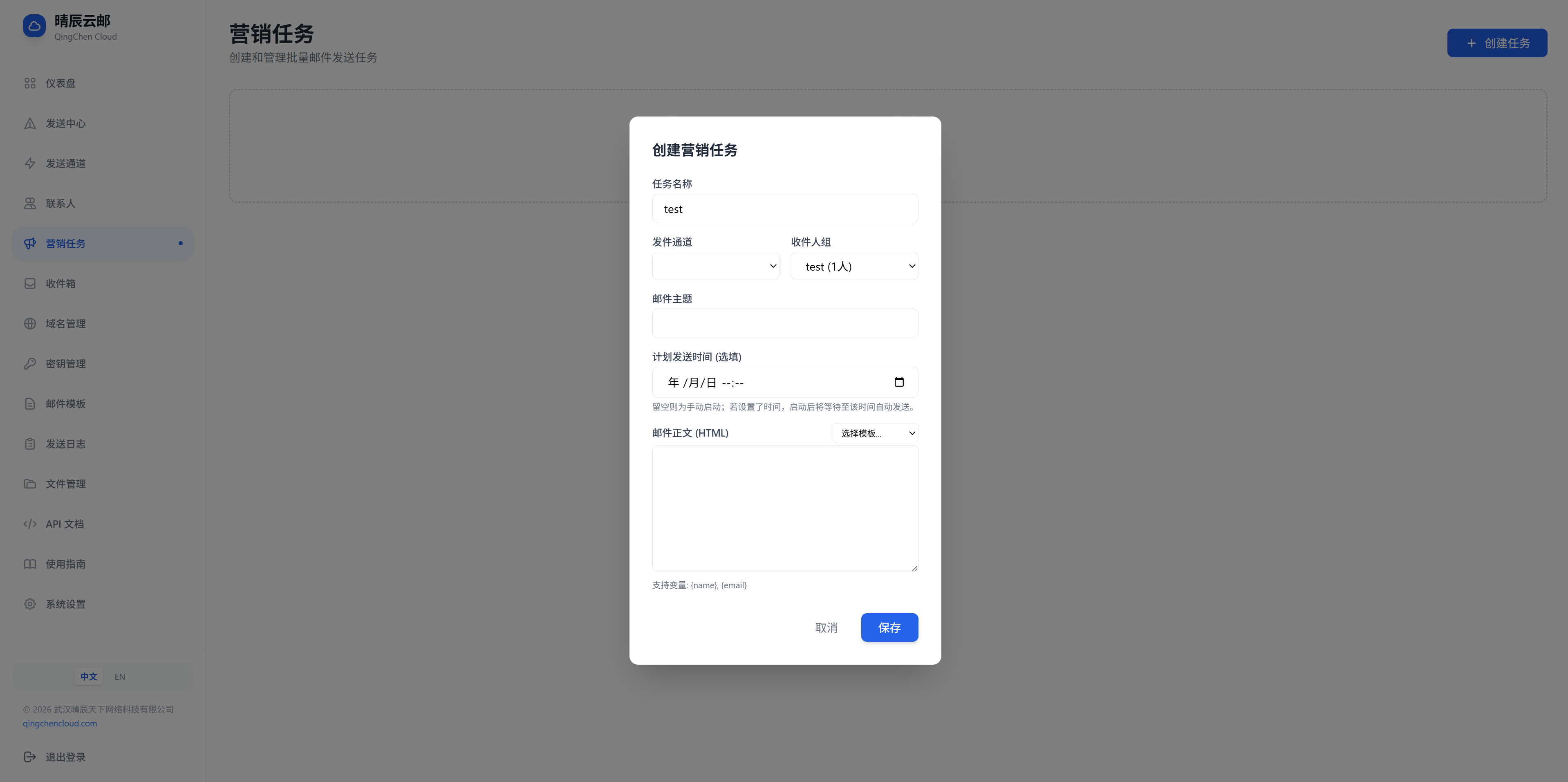 "body": "<h1>欢迎使用晴辰云邮!</h1>"